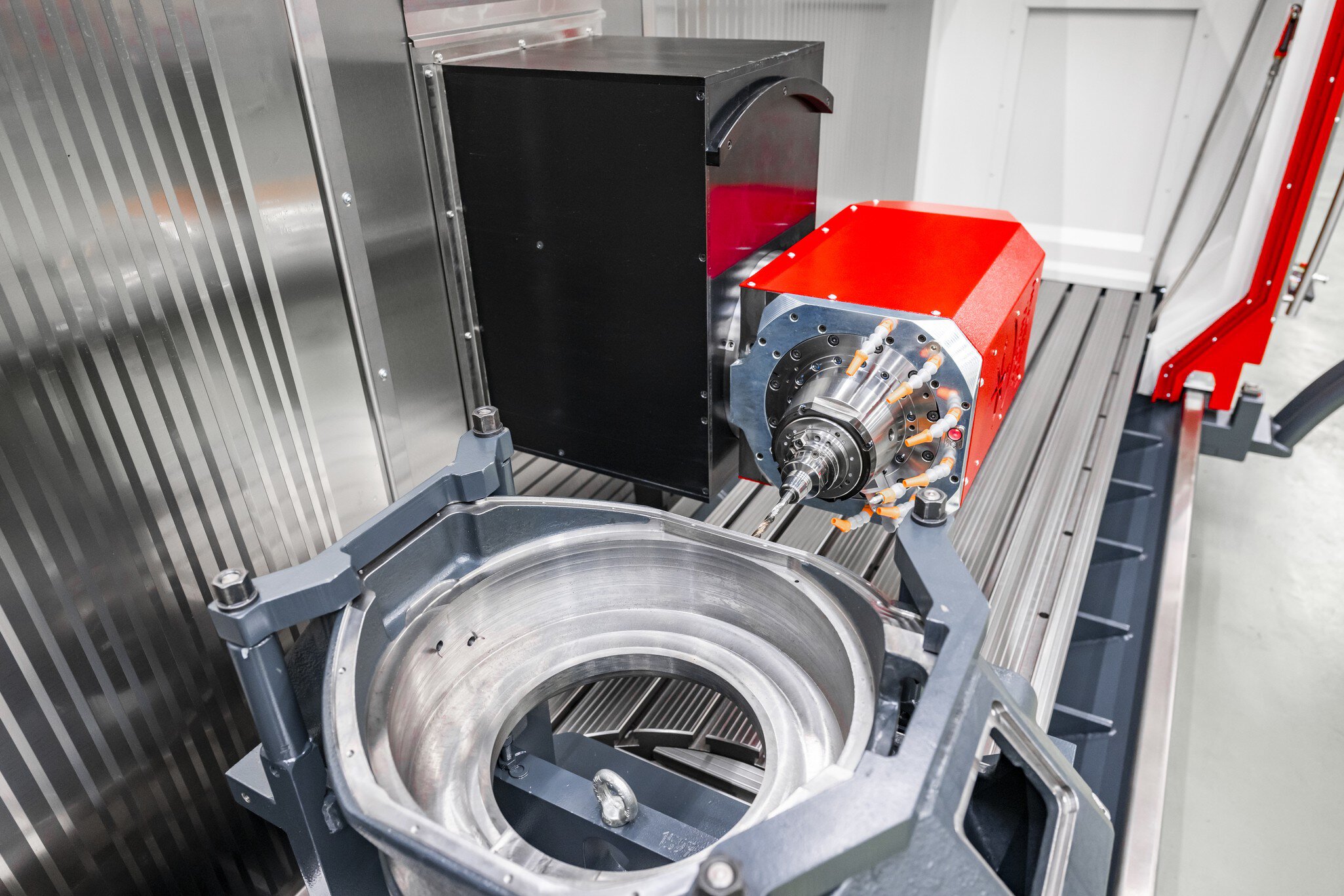 CNC Bearbeitungszentrum ausgestattet mit Drehfenster zur Prozesskontrolle.